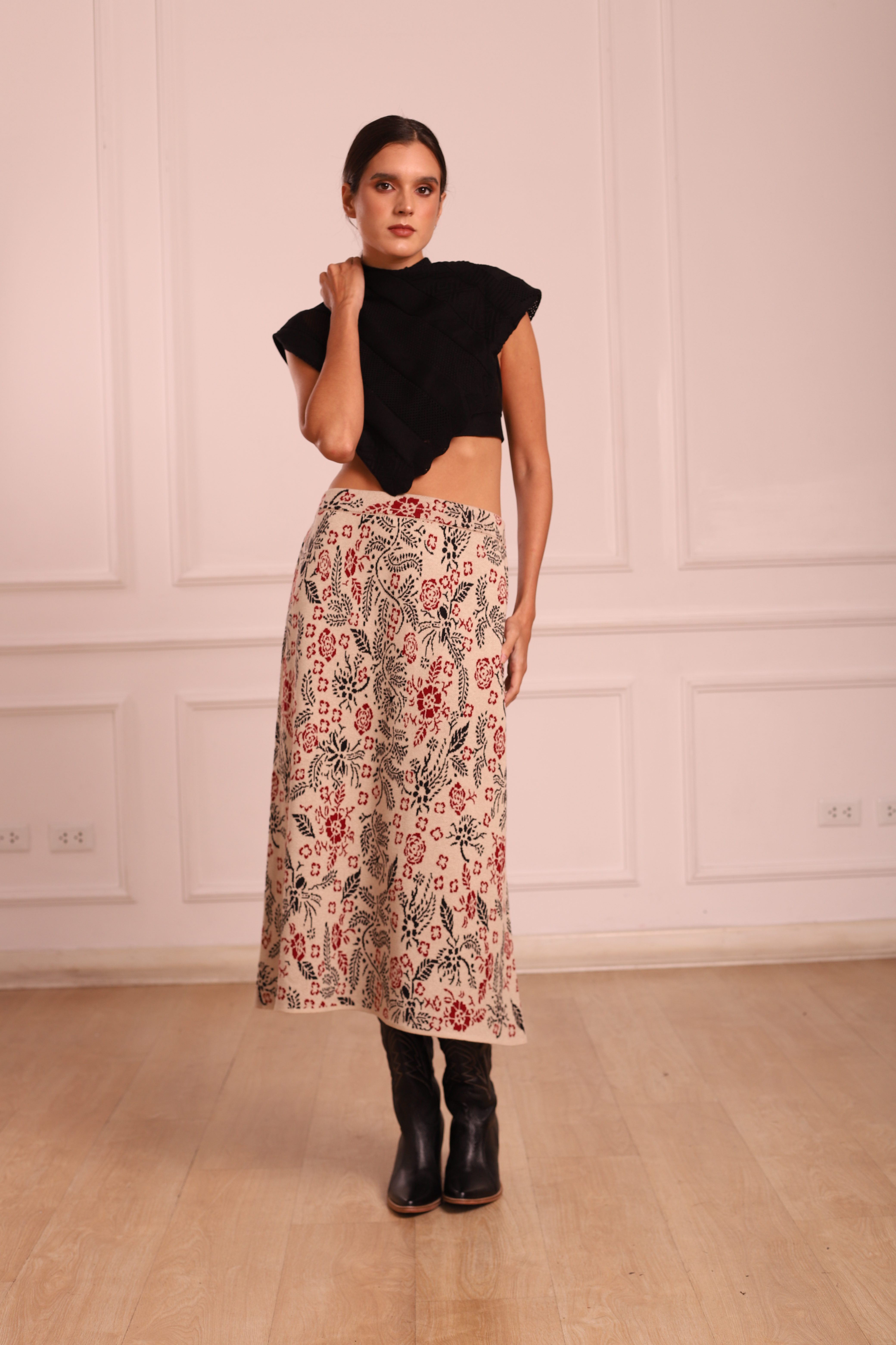 Esta falda midi reversible es una manifestación de versatilidad y estilo sostenible. Tejida en 100% algodón pima orgánico, destaca por su suavidad y durabilidad. El diseño unitalla y su estampado floral evocan la feminidad y el arte natural. Esta falda, al ser reversible, ofrece dos opciones de estilo: un estampado floral detallado por un lado y un color sólido por el otro, permitiendo transformar el look con una simple vuelta.